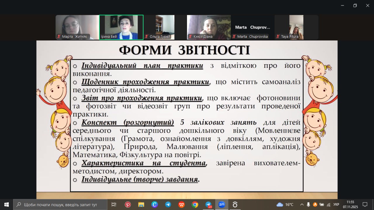 7.11.2025 р. відбулася настановча нарада з питань організації та проведення виробничої практики «Пробна в групах дітей середнього та старшого дошкільного віку» для студенток 4 курсу спеціальності 012 «Дошкільна освіта».